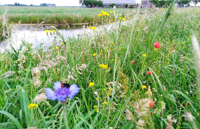 De eerste actie was bloemrijkmengsel zaaien in bermen langs drukke wandel- en fietspaden. Met als doel, zichtbaar worden op een positieve wijze. Bordjes met QR code langs de bloemrijke bermen geven toelichting.